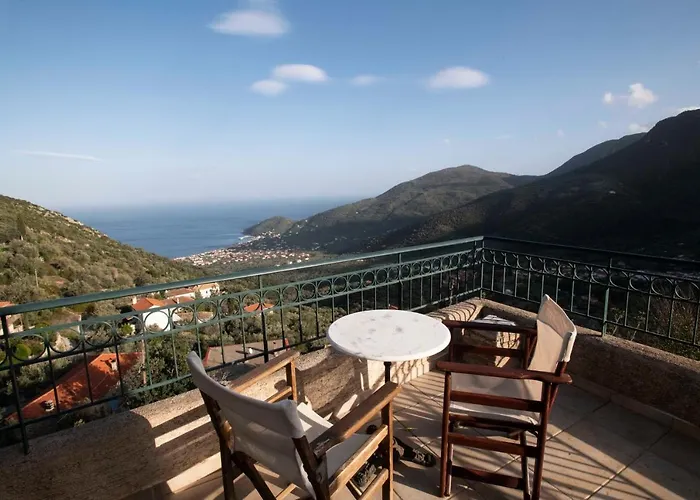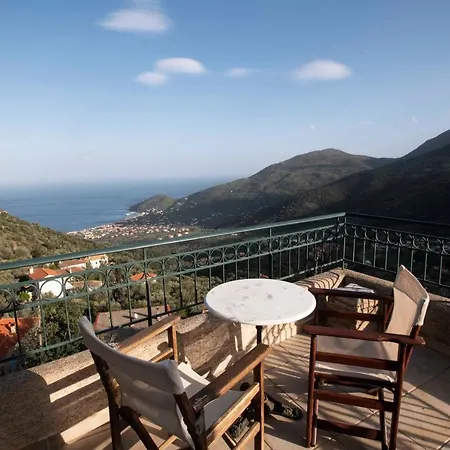 Omkring 2 km fra centrum af Tirós, Stone House With Panoramic View Hotel tilbyder stille værelser med udsigt over havet.